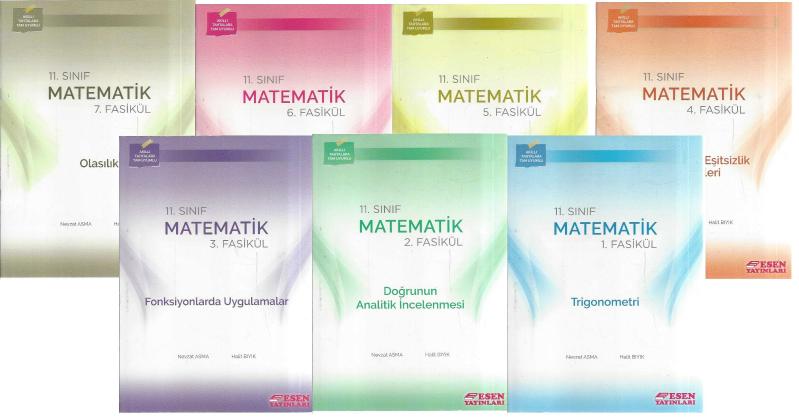 1. FASİKÜL : TRİGONOMETRİ, 79 SAYFA 2. FASİKÜL : DOĞRUNUN ANLİTİK İNCELENMESİ, 88 SAYFA 3. FASİKÜL : FONKSİYONLARDA UYGULAMALAR, 64 SAYFA 4. FASİKÜL : DENKLEM VE EŞİTSİZLİK SİSTEMLERİ, 46 SAYFA 5. FASİKÜL : ÇEMBER VE DAİRE, 104 SAYFA 6. FASİKÜL : KATI CİSİMLER, 48 SAYFA 7. FASİKÜL : OLASILIK, 40 SAYFA ÇOK AZ İŞARETLEME YAPILMIŞ, GENELİ ÇOK TEMİZ.