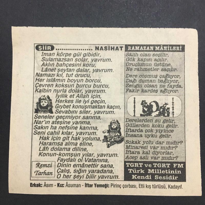 Gazeteler,dergiler,kitaplar harika hediyelerdir.Otantik,orijinal,nadir ve eski gazeteler,dergiler,kitaplar,efemeralar,objeler.Gazeteler bir aynadır.Kitaplar sadece okumak için değil birlikte yaşamak içindir . Kelimeler , notalar , sayılar kardeştirler.Kitaplar insanı binbir gözlü yapar.