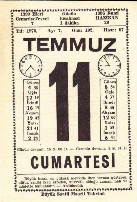 11 TEMMUZ 1970 SAATLİ MAARİF TAKVİMİ, en son 2 yıl önce güncellenmiştir.