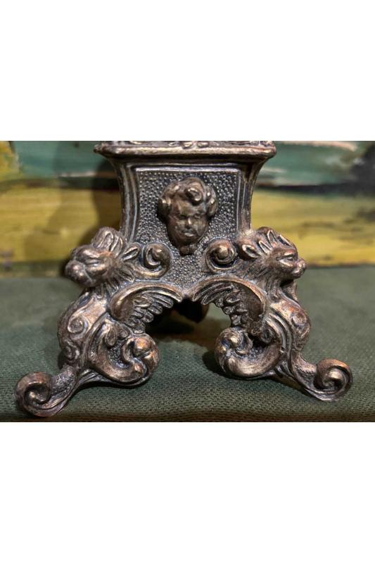 12,5 cm boylarında bir çift Avrupa pirinç şamdan başlıklı antika/koleksiyon objesinin menşei belirtilmemiştir. Objenin ait olduğu dönem bilinmeketedir.