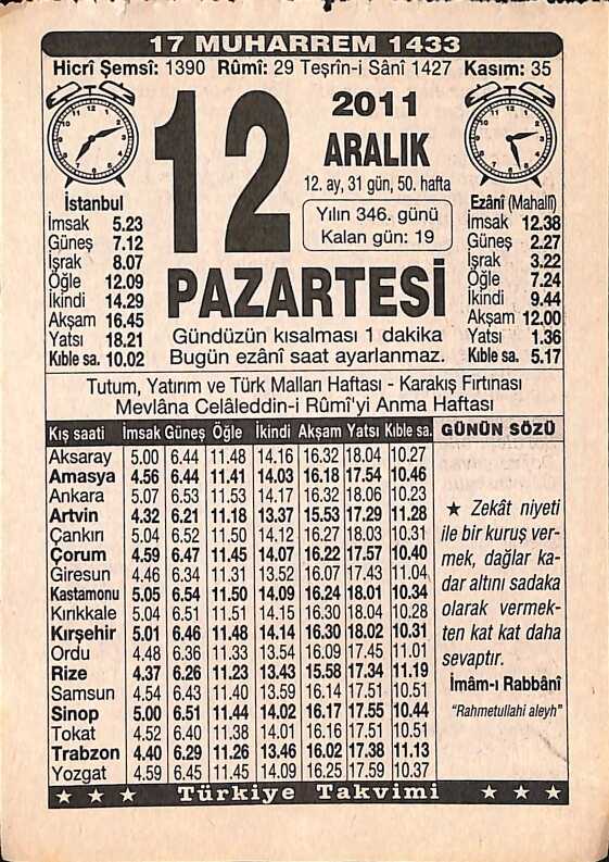 12 Aralık 2011 Takvim Yaprağı - Doğum Günü Hediyesi EFMN15247, en son 20 gün önce güncellenmiştir.
