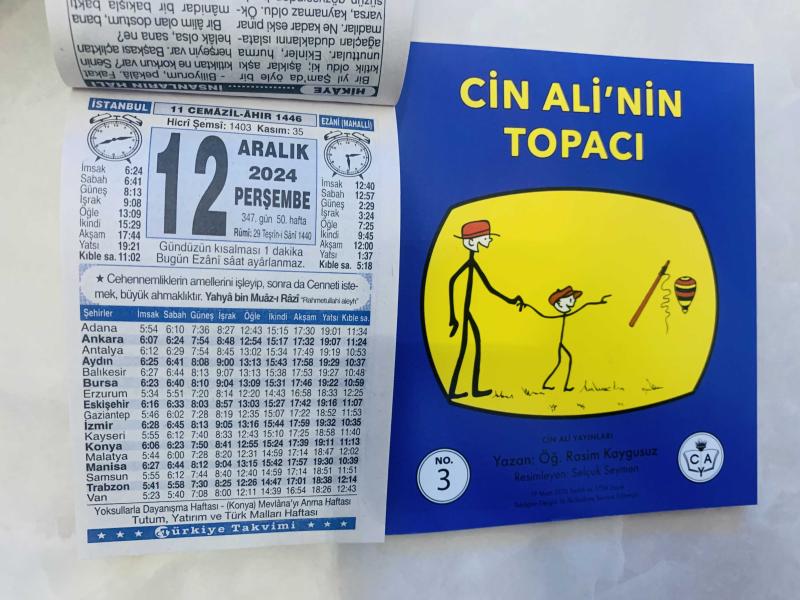 12 Aralık 2024 hediyelik orijinal Türkiye takvim yaprağı (Cin Ali kitabı hediyeli:), en son 7 ay önce güncellenmiştir.