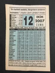 12 EKİM 2007 -TAKVİM YAPRAĞI-DOĞUM GÜNÜ HEDİYESİ-FAZİLET TAKVİMİ,RAMAZAN BAYRAMI 1.GÜN,AMERİKANIN KEŞFİ 1492,SOKULLU MEHMED PAŞANIN ŞEHADETİ 1579,CENNET,ŞEVVAL AYI