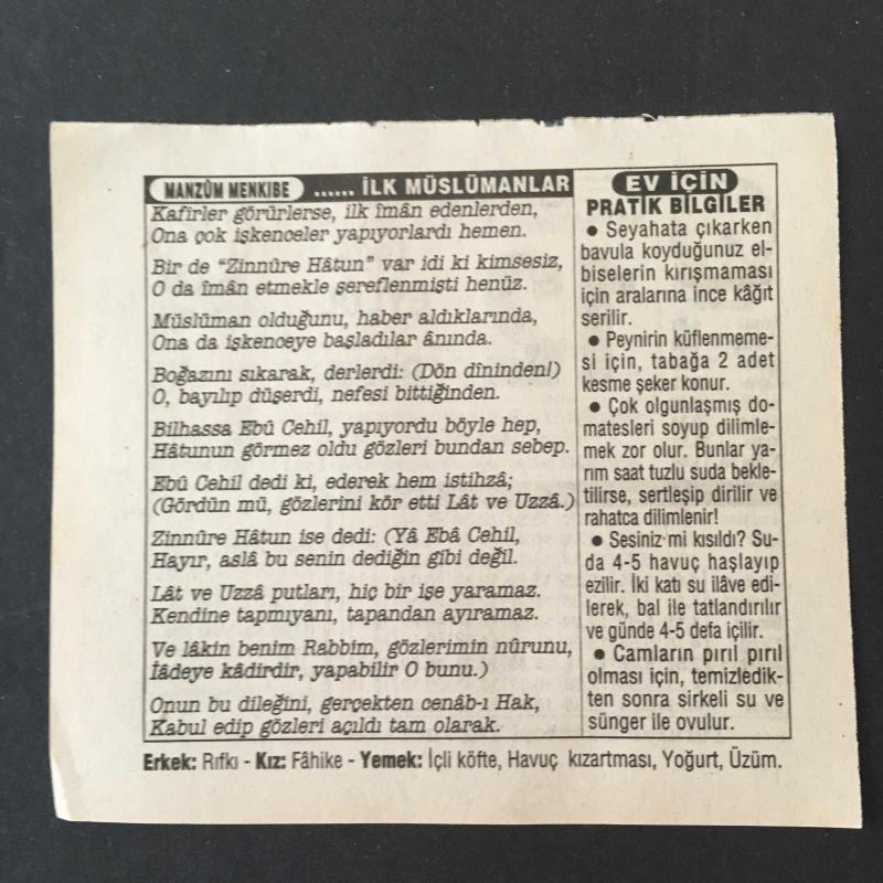 Gazeteler,dergiler,kitaplar harika hediyelerdir.Otantik,orijinal,nadir ve eski gazeteler,dergiler,kitaplar,efemeralar,objeler.Gazeteler bir aynadır.Kitaplar sadece okumak için değil birlikte yaşamak içindir . Kelimeler , notalar , sayılar kardeştirler.Kitaplar insanı binbir gözlü yapar.