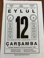 12 EYLÜL 2007 - TAKVİM YAPRAĞI - DOĞUM GÜNÜ HEDİYESİ - BÜYÜK SAATLİ MAARİF TAKVİMİ - HZ.MUHAMMED - YARIN MUBAREK RAMAZAN - MUDANYA,URLA,KIRKAĞAÇ DÜŞMAN İŞGALİNDEN KURTULDU - TÜRK SİLAHLI KUVVETLERİ YÖNETİME EL KOYDU - GAZETECİ ABBAS PARMAKSIZOĞLU VEFAT ETTİ, en son 8 ay önce güncellenmiştir.