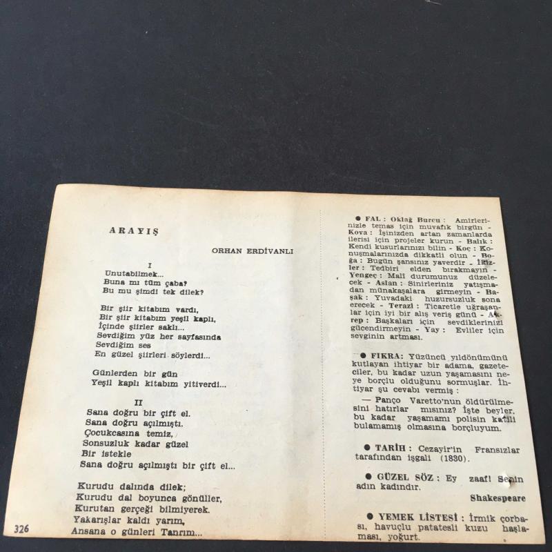 Gazeteler,dergiler,kitaplar harika hediyelerdir.Otantik,orijinal,nadir ve eski gazeteler,dergiler,kitaplar,efemeralar,objeler.Gazeteler bir aynadır.Kitaplar sadece okumak için değil birlikte yaşamak içindir . Kelimeler , notalar , sayılar kardeştirler.Kitaplar insanı binbir gözlü yapar.
