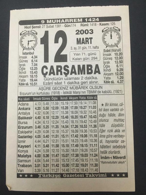 12 MART 2003-TAKVİM YAPRAĞI-DOĞUM GÜNÜ HEDİYESİ-TÜRKİYE GAZETESİ TAKVİMİ,ERZURUMUN KURTULUŞU,1918,İSTİKLAL MARŞININ TBMM DE KABULÜ 1921,BİLMESEKTE OLUR, en son 8 ay önce güncellenmiştir.