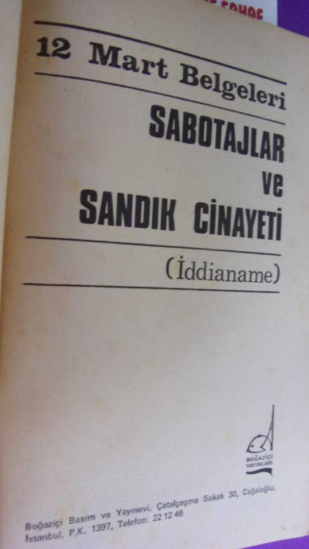 12 MART BELGELERİ - SABOTAJLAR VE SANDIK CİNAYETİ (İDDİANAME) adlı eser, Kitap > Sosyal Bilimler > Siyaset kategorisinde İkinci El olarak satıştadır.