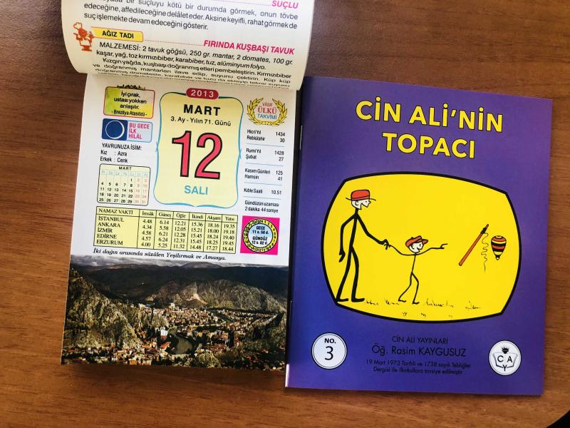 12 Mart 2013 hediyelik orijinal Ülkü takvim yaprağı (Cin Ali kitabı hediyeli:) başlıklı ürün, Efemera, Müzik, Sinema > Belge ve Evraklar > Takvimler kategorisi altında İkinci El olarak satılmaktadır.