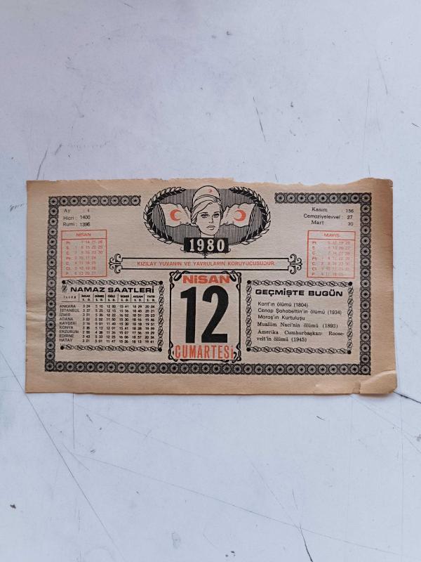 12 NİSAN 1980 takvim yaprağı doğum günü hediyesi ( YUKARI RAF ) başlıklı ürün, Efemera, Müzik, Sinema > Belge ve Evraklar > Takvimler kategorisi altında İkinci El olarak satılmaktadır.