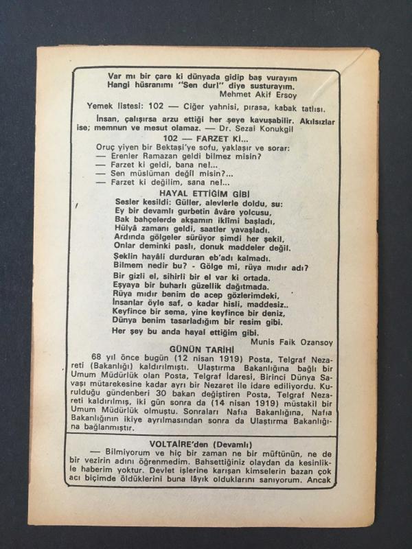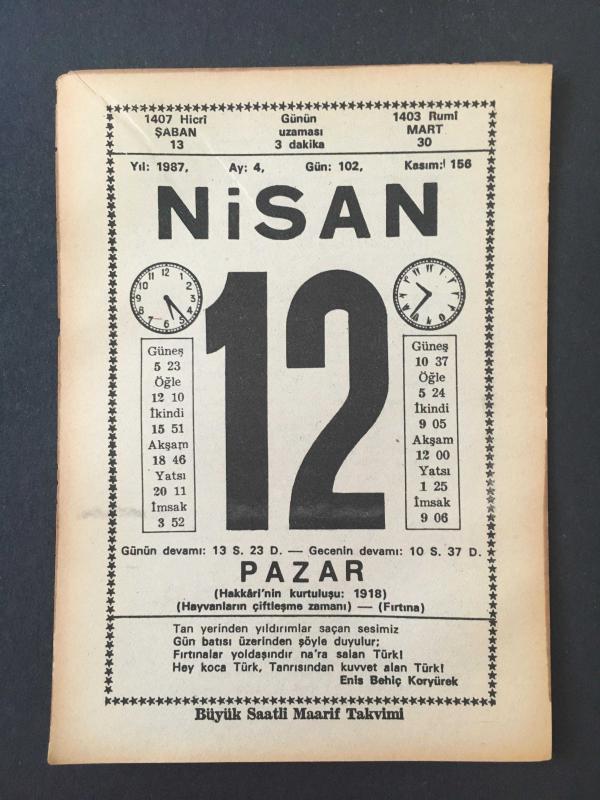 12 NİSAN 1987 -TAKVİM YAPRAĞI-DOĞUM GÜNÜ HEDİYESİ-BÜYÜK SAATLİ MAARİF TAKVİMİ,HAKKARİNİN KURTULUŞU 1918,HAYVANLARIN ÇİFTLEŞME ZAMANI ,FARZET Kİ,HAYAL ETTİĞİM GİBİ,POSTA TELGRAF NEZARETİ KALDIRILMIŞTI,12 NİSAN 1919,VOLTAİRE DEN, en son 8 ay önce güncellenmiştir.