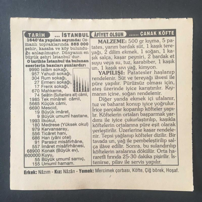 Gazeteler,dergiler,kitaplar harika hediyelerdir.Otantik,orijinal,nadir ve eski gazeteler,dergiler,kitaplar,efemeralar,objeler.Gazeteler bir aynadır.Kitaplar sadece okumak için değil birlikte yaşamak içindir . Kelimeler , notalar , sayılar kardeştirler.Kitaplar insanı binbir gözlü yapar.