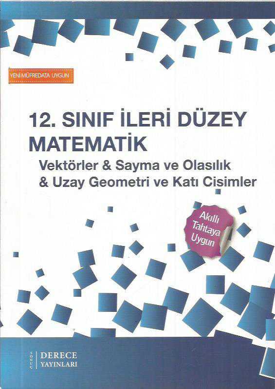 12.SINIF İLERİ DÜZEY MATEMATİK - VEKTÖRLER&SAYMA VE OLASILIK&UZAY GEOMETRİ VE KATI CİSİMLER, KOMİSYON tarafından kaleme alınmıştır. Kitap 2016 yılında DERECE YAYINLARI tarafından [ANKARA] yayınlanmıştır. 120 sayfadır. 12.SINIF İLERİ DÜZEY MATEMATİK - VEKTÖRLER&SAYMA VE OLASILIK&UZAY GEOMETRİ VE KATI CİSİMLER adlı eser Türkçe dilindedir.