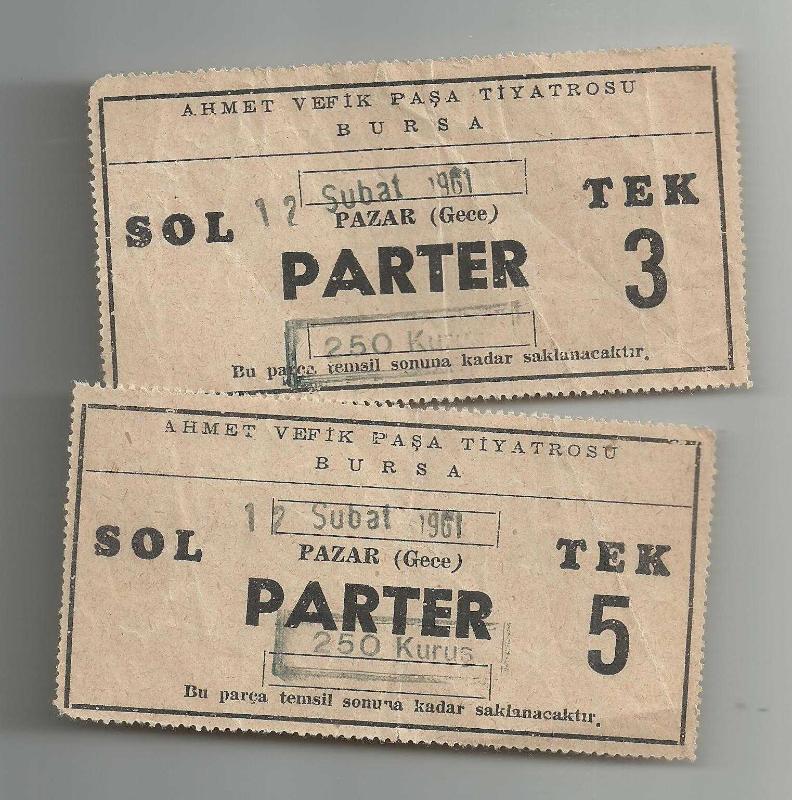12 ŞUBAT 1961 BURSA AHMET VEFİK PAŞA TİYATROSU İKİ ADET OYUN BİLETİ..., en son 5 ay önce güncellenmiştir.