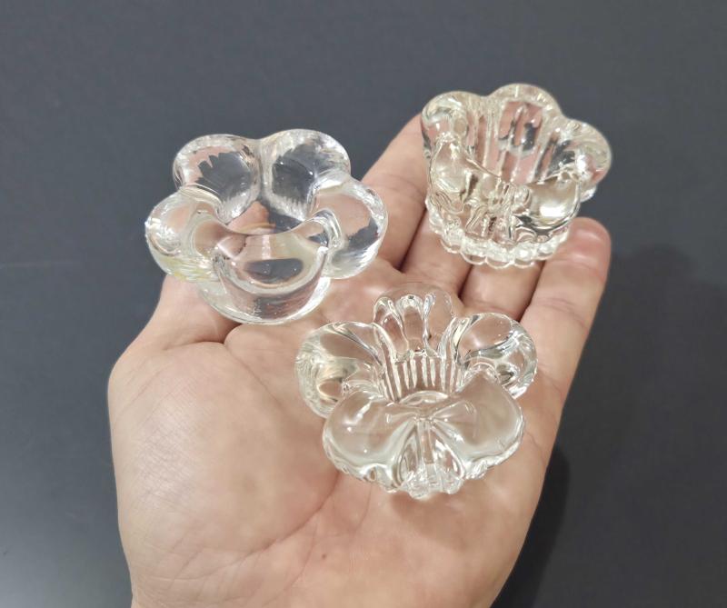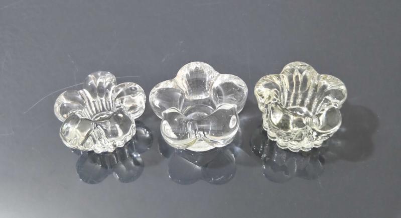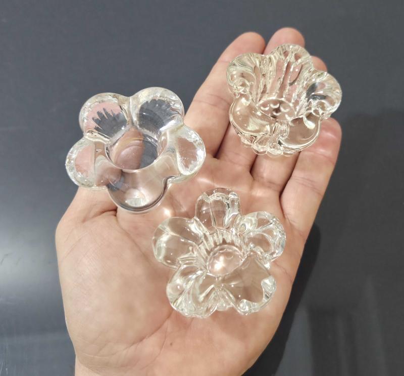 ÇİÇEK FORMUNDA ESKİ CAM MUMLUKLAR. ATIKSIZ KIRIKSIZ. SAYFAMDAKİ DİĞER ÜRÜNLERİMİ İNCELEYİNİZ