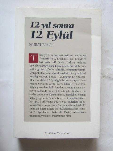 12 Yıl Sonra 12 Eylül, Murat Belge tarafından kaleme alınmıştır. Kitap 1992 yılında Birikim Yayınları tarafından [İstanbul] yayınlanmıştır. 421 sayfadır. Sayfa bilgisi 421 s. olarak belirtilmiştir. 12 Yıl Sonra 12 Eylül adlı eser Türkçe dilindedir.