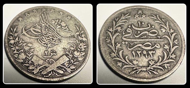 1293/10 II.ABDÜLMAMİD 2 KURUŞ -MISIR (GÜMÜŞ 2,8Gr.) KM#293 (OSM2P) 2,8 Gr.GÜMÜŞ 19 mm. II.ABDÜLHAMİD Dönemi MISIR toprağımızda, 1293 (1885) de BERLİN’de bastırılmıştır.