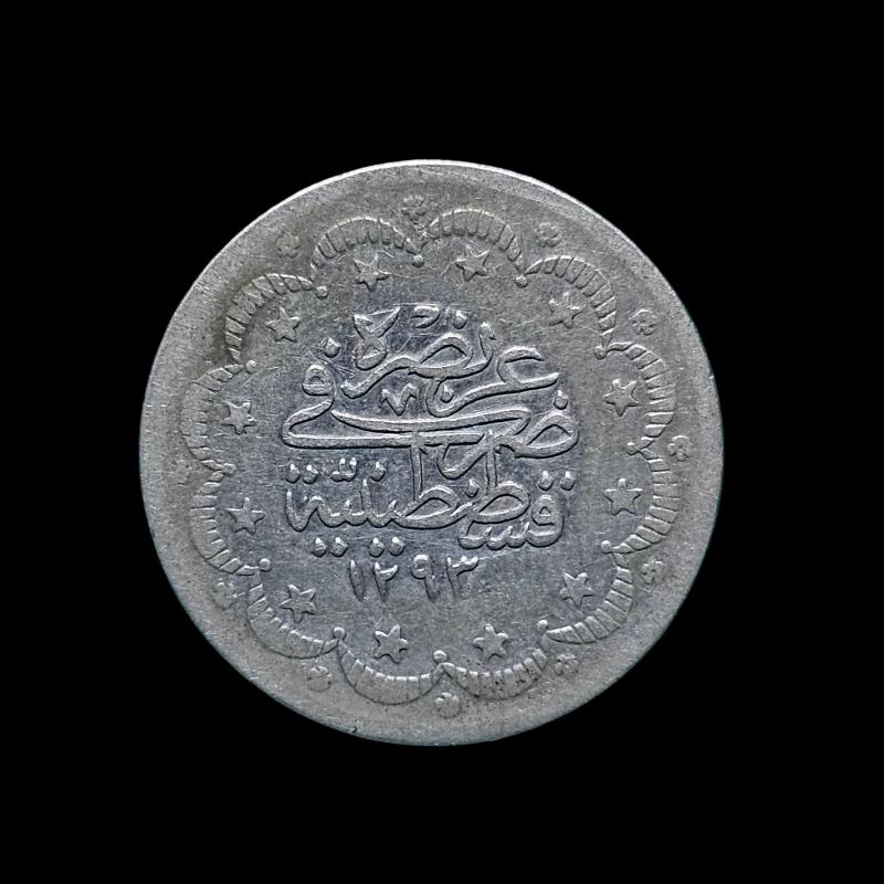 Sultan/Empire : II. Abdulhamid Para/Coin : 5 kuruş Hicri/AH : 1293 Cülus/Year : 11 Dönem/Period : 1876-1908 Miladi/AD : 1886 KM# : 737 Kondisyon : T Condition : F Basım Adedi / Mintage : 1,788,000 Darphane / Location : Kostantiniye Maden / Material : Gümüş/Silver Çap / Diameter(mm) : 23.74 Ağırlık / Weight (gr) : 6.01 Gümüş / AGW (gr) : 4.99
