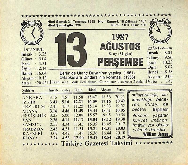 13 Ağustos 1987 Takvim Yaprağı - Doğum Günü Hediyesi EFMN13856, en son 21 gün önce güncellenmiştir.