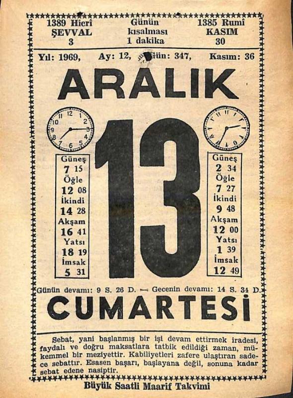 13 Aralık 1969 Takvim Yaprağı - Doğum Günü Hediyesi EFM(N)11374, en son 20 gün önce güncellenmiştir.