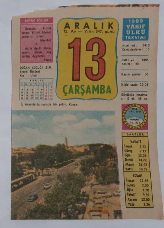 13 Aralık 1989 Takvim Yaprağı - Doğum Günü Hediyesi EFM(N)6826, en son 20 gün önce güncellenmiştir.