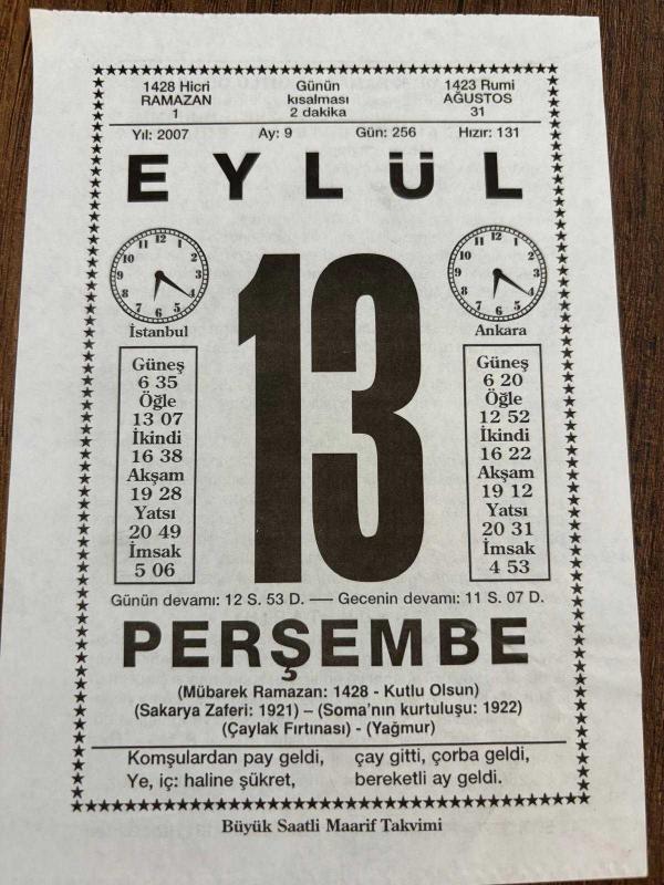 13 EYLÜL 2007 - TAKVİM YAPRAĞI - DOĞUM GÜNÜ HEDİYESİ - BÜYÜK SAATLİ MAARİF TAKVİMİ - HZ.MUHAMMED - GAZİ MUSTAFA KEMAL ATATÜRK - SAKARYA MEYDAN SAVAŞININ KAZANILMASI, en son 8 ay önce güncellenmiştir.