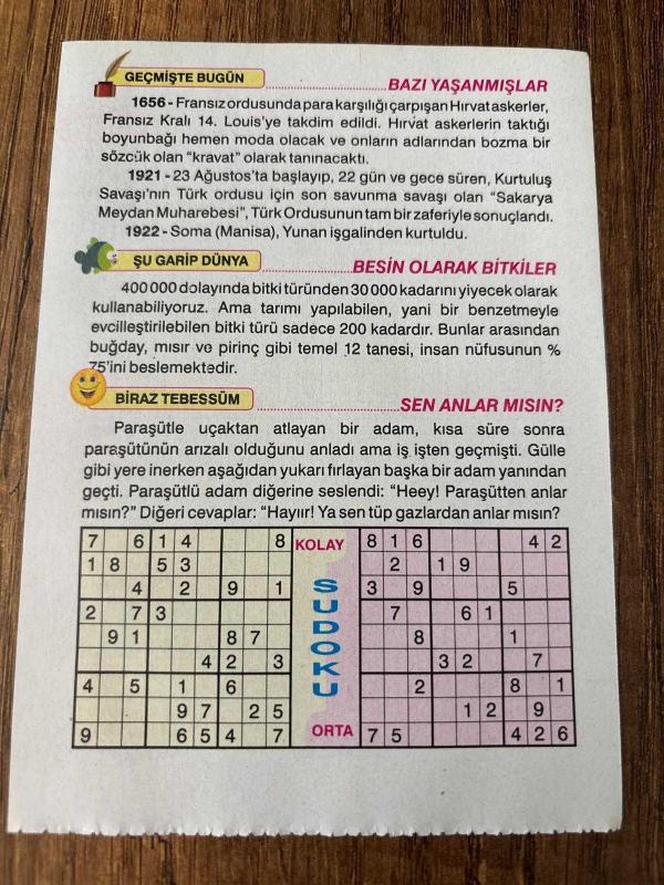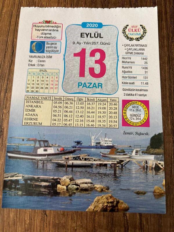 Orijinal takvim yaprağıdır. -