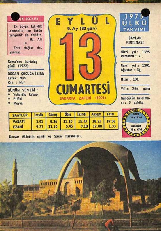 13 Eylül 1975 Takvim Yaprağı - Doğum Günü Hediyesi EFM(N)10410, en son 22 gün önce güncellenmiştir.