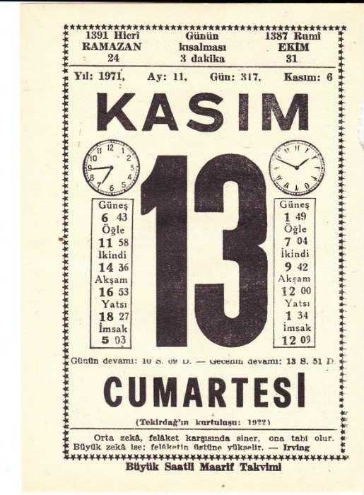 13 KASIM 1971 SAATLİ MAARİF TAKVİMİ YAPRAĞI, en son 1 yıl önce güncellenmiştir.