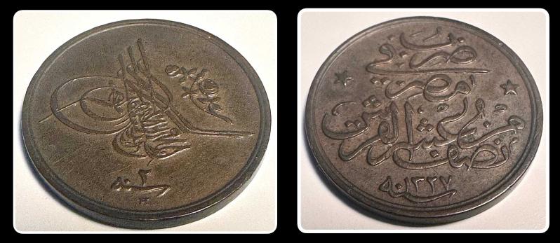 1327/2H M.REŞAD 1/20 PARA (KM#301) MISIR - OSM1/20 3,2 Gr.BAKIR 20 mm. 1327-1336 arası (1908-1918) SULTAN MEHMED REŞAD DÖNEMİ 1910 tarihinde Mısır topraklarımızda kullanılan, İngiltere Heaton Darphanesinde Bastırılan 1/20 Kuruş “AŞAR” olarak da bilinir. Paradaki “H” harfi vardır. Yani HEATON darphane basımıdır.