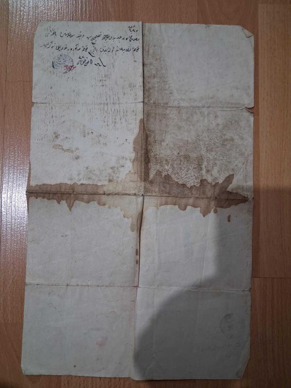 Bölgesel sarı lekeler ve katlanma çizgilerinde deformeler var, Okuyabildiğimiz kadarıyla Adli veya Noter evrak olabilir. Lütfen fotoğrafları inceleyiniz.