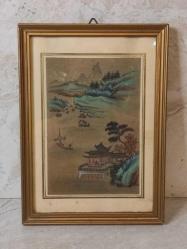 13621-ÇOK ŞAHANE AHŞAP ÇERÇEVE İÇERSİNDE KUMAŞ ÜZERİNE EL ÇİZİMİ RESİM TABLO