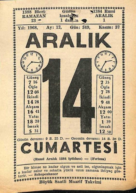 14 Aralık 1968 Takvim Yaprağı - Doğum Günü Hediyesi EFM(N)11062, en son 20 gün önce güncellenmiştir.