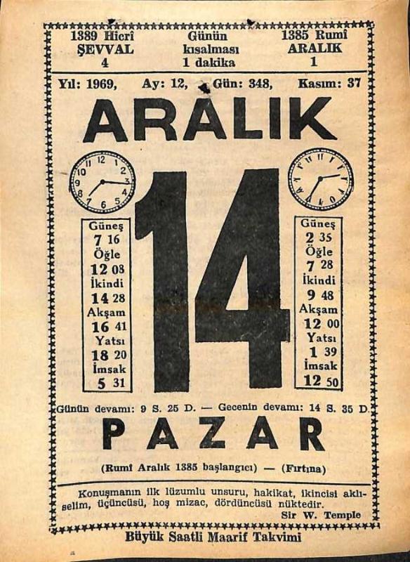 14 Aralık 1969 Takvim Yaprağı - Doğum Günü Hediyesi EFM(N)11373, en son 22 gün önce güncellenmiştir.