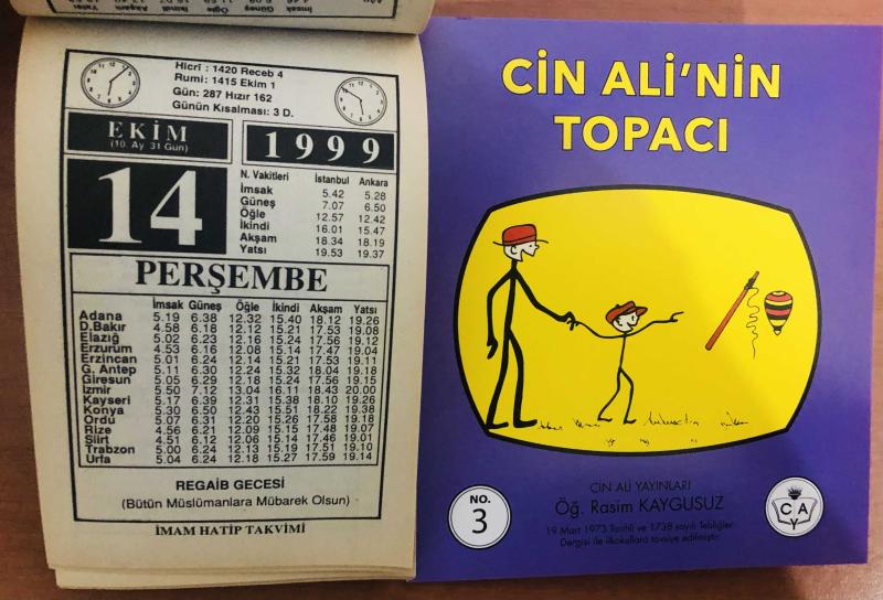 14 Ekim 1999 hediyelik orijinal İmam Hatip takvim yaprağı (Cin Ali kitabı hediyeli:), 4 yıl önce satışa sunulmuştur.