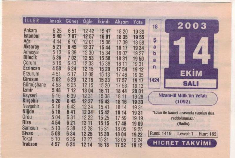 14 Ekim 2003 Takvim Yaprağı EFM(N)3716, en son 19 gün önce güncellenmiştir.