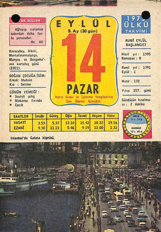 14 Eylül 1975 Takvim Yaprağı - Doğum Günü Hediyesi EFM(N)10411, en son 22 gün önce güncellenmiştir.