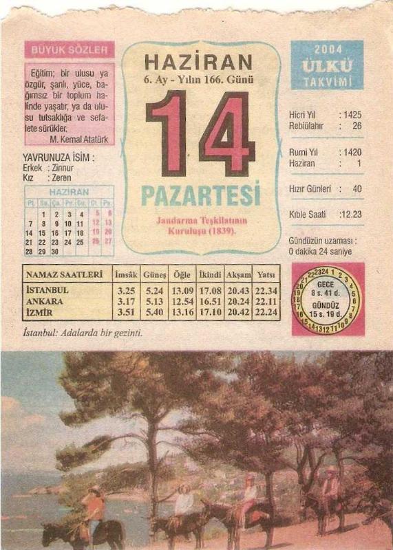 14 HAZİRAN 2004 ÜLKÜ TAKVİMİ YAPRAĞI, en son 1 yıl önce güncellenmiştir.