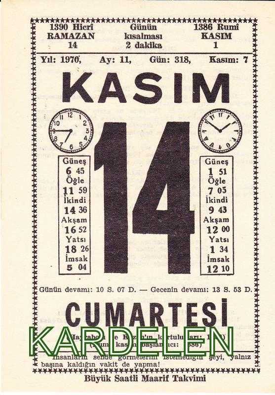 14 KASIM 1970 SAATLİ MAARİF TAKVİMİ YAPRAĞI, en son 1 yıl önce güncellenmiştir.