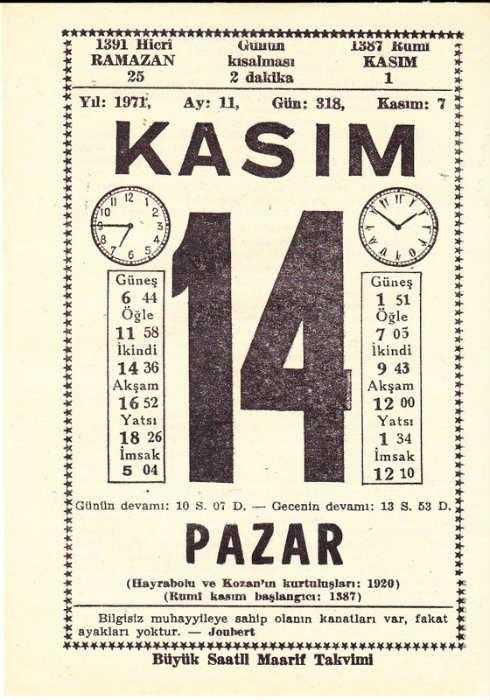 14 KASIM 1971 SAATLİ MAARİF TAKVİMİ YAPRAĞI, en son 1 yıl önce güncellenmiştir.
