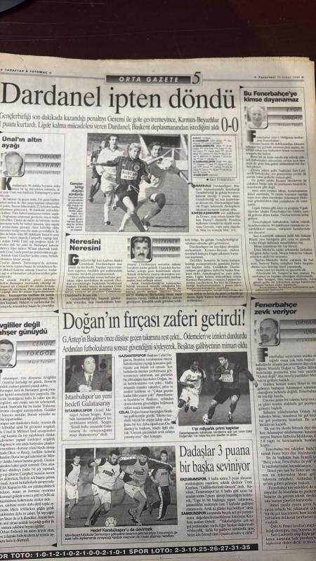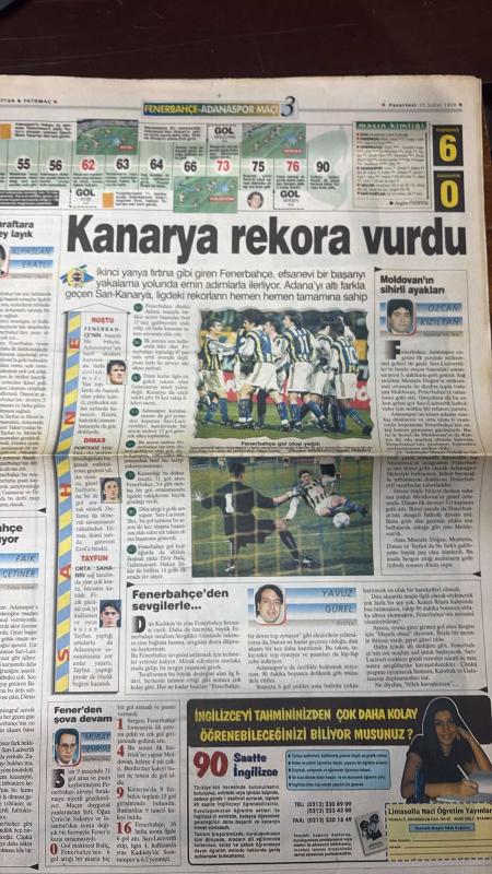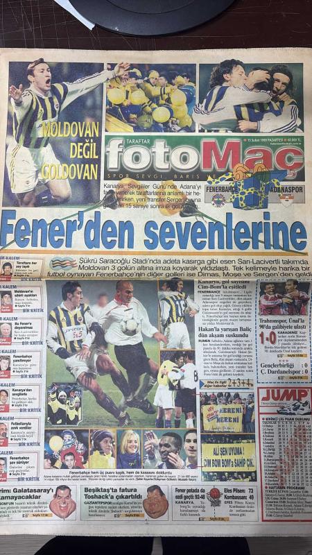 14 ŞUBAT 1999 - FOTOMAÇ SPOR GAZETESİ - TURKISH NEWSPAPER - DOĞUM GÜNÜ /HEDİYESİ - 15 ŞUBAT 1999 - FENERBAHÇE - ADANASPOR - MOLDOVAN - SERGEN - DIMAS - MOŞE - RÜŞTÜ - BALİÇ - JOACHIM LÖW - HAKAN ŞÜKÜR - GALATASARAY - TOSHACK - SÜLEYMAN SEBA - ÜNAL - TRABZONSPOR - ÜLKERSPOR - EFES PİLSEN TARAFTAR - FOTOMAÇ - FENER’DEN SEVENLERİNE ANLAMLI HEDİYE - MOLDOVAN’IN SİHİRLİ AYAKLARI - SERGEN FENERBAHÇE FORMASIYLA İLK GOLÜNÜ ATTI - KANARYA GOL SAYISINI CİM-BOM’LA EŞİTLEDİ - BALİÇ SUSKUN KALDI - RÜŞTÜ TAM BEŞ YERİNDEN SAKAT - BEŞİKTAŞ’TA FATURA TOSHACK’A - TRABZONSPOR ÜNAL’LA 90’DA GALİBİYETE ULAŞTI - ÜLKERSPOR ASVEL’İ EZDİ GEÇTİ - EFES PİLSEN KOMBASSAN’I FARKLI YENDİ FENERBAHÇE 6-0 ADANASPOR (GOLLER: MOLDOVAN 3, DIMAS, MOŞE, SERGEN) TRABZONSPOR 1-0 BURSASPOR (GOL: ÜNAL 90. DK) ÜLKERSPOR 92-48 ASVEL EFES PİLSEN 73-49 KOMBASSAN - EKSİKSİZ TAM TAKIM GAZETE adlı eser, Kitap > Süreli Yayınlar > Gazeteler kategorisinde İkinci El olarak satıştadır.