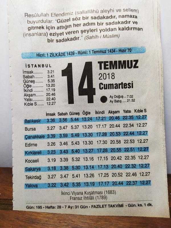 14 TEMMUZ 2018 TAKVİM YAPRAĞI, en son 1 yıl önce güncellenmiştir.