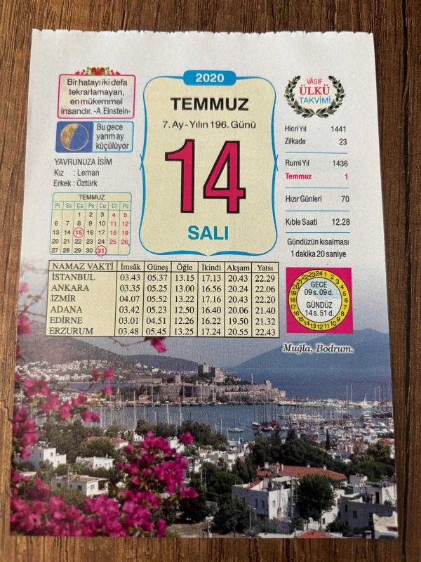 14 TEMMUZ 2020 - TAKVİM YAPRAĞI - DOĞUM GÜNÜ HEDİYESİ - BÜYÜK SAATLİ MAARİF TAKVİMİ - Muğla, Bodrum - ULUSLARARASI UZAY İSTASYONU - HAYALBAZ - TAGORE - 1683 - Osmanlı Devleti Orduları, Viyana'yı ikinci kez kuşattı - 2006- Polonya Cumhurbaşkanı Lech Kaczinsky, başbakanlığa ikiz kardeşi Jaroslaw Kaczinsky'yi aday gösterdi başlıklı ürün, Efemera, Müzik, Sinema > Belge ve Evraklar > Takvimler kategorisi altında İkinci El olarak satılmaktadır.