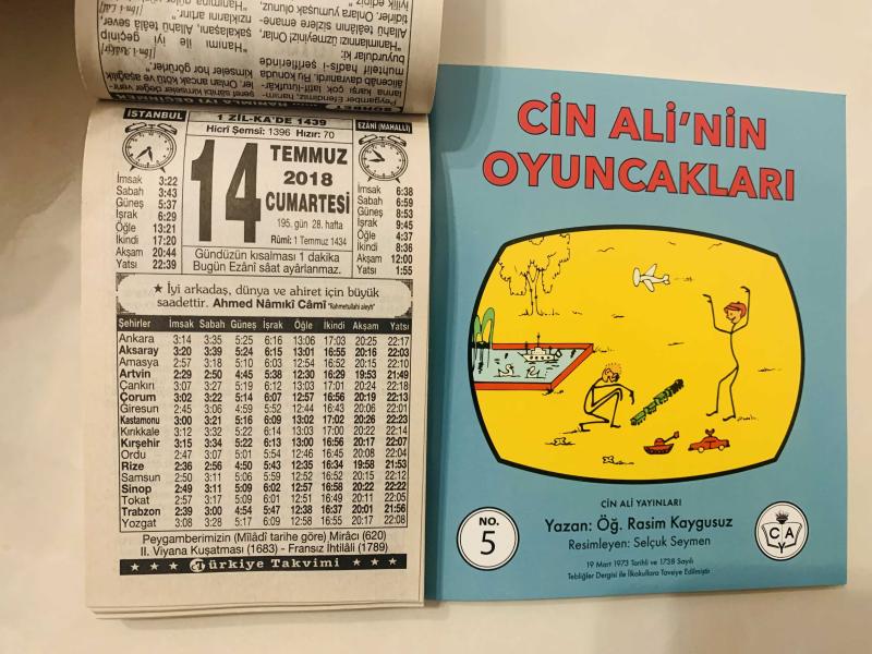 14 Temmuz 2018 hediyelik orijinal Türkiye takvim yaprağı (Cin Ali kitabı hediyeli:) başlıklı ürün, Efemera, Müzik, Sinema > Belge ve Evraklar > Takvimler kategorisi altında İkinci El olarak satılmaktadır.