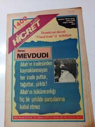1400 Hicret Gazetesi - 1 Ekim 1979-Sayı 3 - Demokrasi Düzeni Ulusal İradeyi Belirliyor - Necmettin Erbakan Bizim İşimiz Seçim Değil İslam'ı Tebliği- Merhum Mevdudi - Allah'ın İradesinden Kaynaklanmayan Her İrade Puttur Tağuttur Şirktir Allah'ın Hükümranlığı Hiç Bir Şekilde Parçalanma Kabul Etmez - Sunni Şii Birleşin adlı eser Türkçe dilindedir.