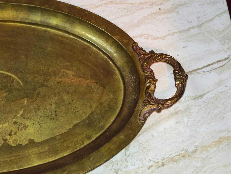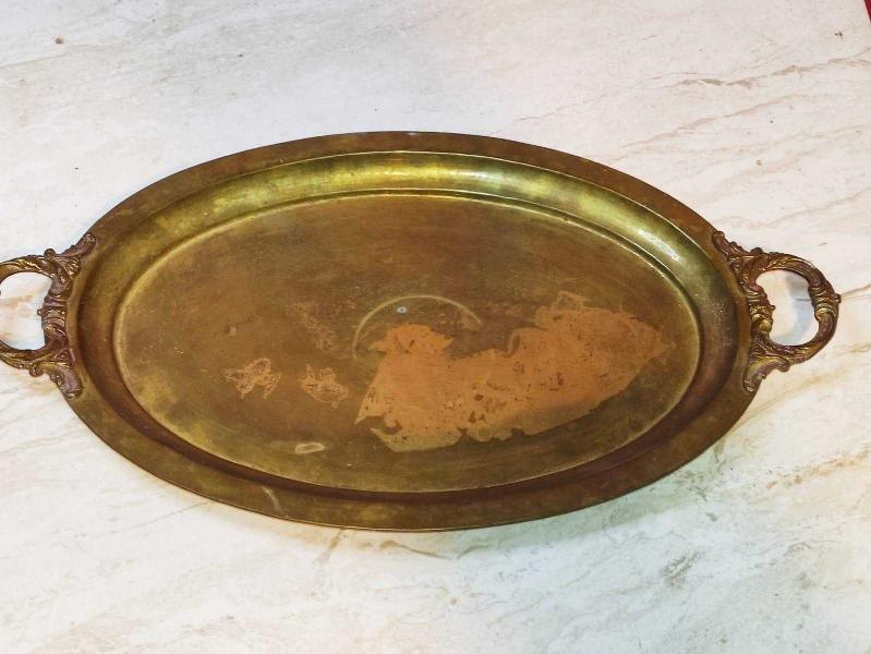 14482-ESKİLERDEN PİRİNÇ KAHVE TEPSİSİ **PARLATILMASI GEREKİR