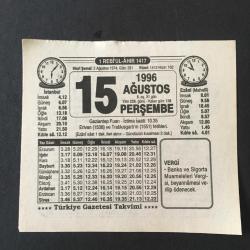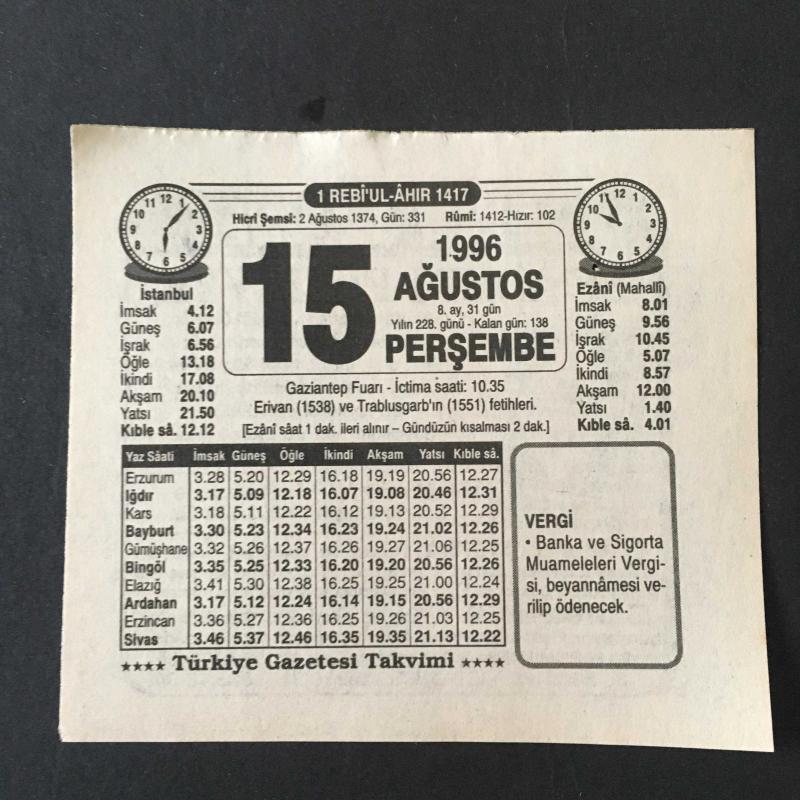 15 AĞUSTOS 1996 -TAKVİM YAPRAĞI-DOĞUM GÜNÜ HEDİYESİ-TÜRKİYE GAZETESİ TAKVİMİ,GAZİANTEP FUARI ERİVAN 1538,VE TRABLUSGARP IN 1551 FETİHLERİ,, en son 8 ay önce güncellenmiştir.
