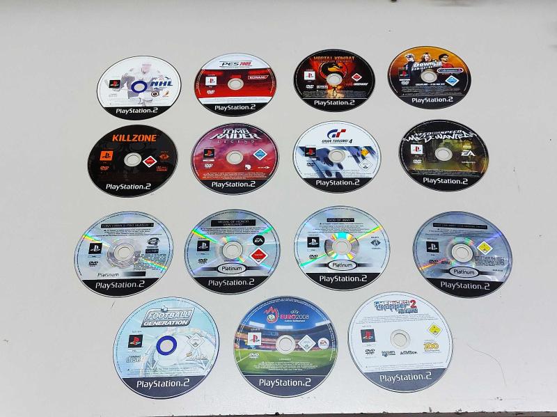 Toplamda 15 adet orijinal PlayStation 2 oyunu. Oyunların hepsi bozuktur. Bir kısmı hiç açılmamaktadır, bir kısmında takılmalar ve donmalar söz konusudur. Örneğin God of War 2-3 saatlik bir oynanıştan sonra bazı yerlerde takılma yapmaktadır. Ancak hiçbiri tamamen açılmayan oyunlar değildir. Hepsi görsel amaçlı dekorluk ve koleksiyonluktur, lütfen bunun bilincinde alım yapınız. *Oyun Listesi* 1 - NHL 2001 2 - PES 2009 3 - Mortal Kombat Shaolin Monks 4 - Downhill Domination 5 - Killzone 6 - Tomb Raider Legend 7 - Gran Turismo 4 8 - Need for Speed Most Wanted 9 - Tony Hawk's Pro Skater 3 10 - Medal of Honor Vanguard 11 - God of War 12 - Lego Star Wars II - The Original Trilogy 13 - Football Generation 14 - Euro 2008 15 - American Chopper 2 Full Throttle