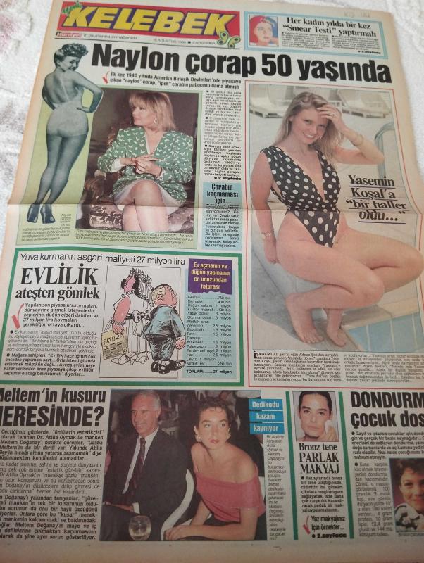 15 Ağustos 1990-yeni kelebek-her kadın yılda bir kez-naylon çorap 50 yaşında-yasemin koşala bir haller oldu-emel sayın-çorabın kaçmaması için-evlilik ateşten gömlek-yuva kurmanın askeri maliyeti 27 milyon-dondurma çocuk dostu-atilla oymak-meltem doğanay-parlak makyaj-kim sevmez mısır'ı-süpermarket-hanımlar pembeleşiyor-egzersiz başka ne işe yarar-çalar saat icadı oldu-belirgin ve çarpıcı gözler-sevgili Güzin abla-hayat bir romandır-yaman okay-melih akalın-mavi büyüyor-gıdalarda ki madensel tuzlar-bizimkiler-trt'nin dört derdi-sesi denetimi deldi sıra gögüslerinde-ölüm tuzağı-muş düğünü-gençliğin tatlı sesi-robotman-eğlence adlı eser, Kitap > Süreli Yayınlar > Gazeteler > Türkiye > Genel > Günlük kategorisinde İkinci El olarak satıştadır.