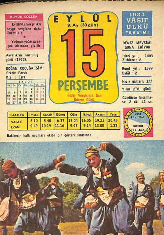 15 Eylül 1983 Takvim Yaprağı - Doğum Günü Hediyesi EFM(N)10035, en son 22 gün önce güncellenmiştir.